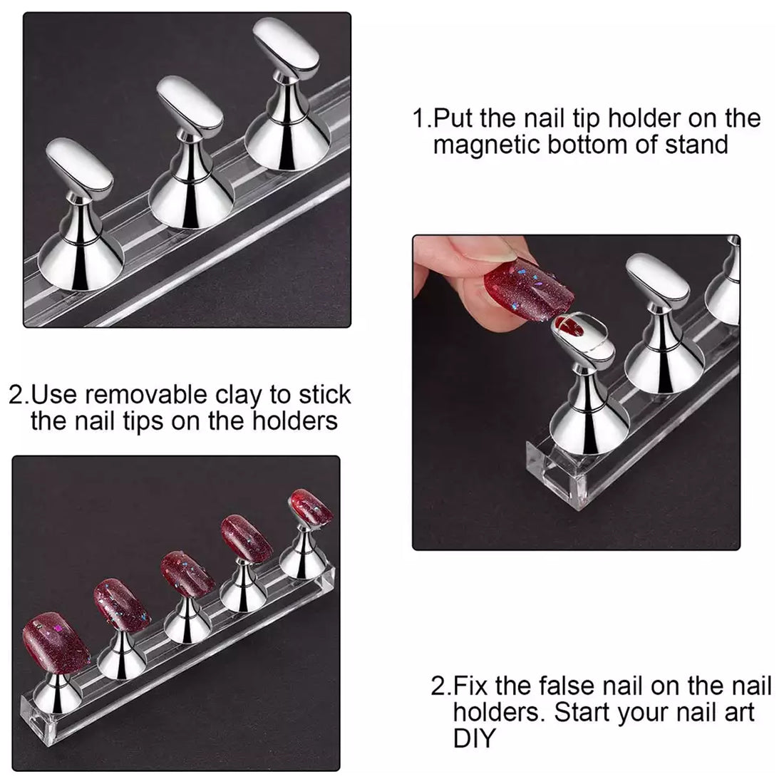 - MAGNETIC DESIGN: Designed with magnetic bottom, you can fix them on the crystal base firmly. The acrylic base helps you place and store your nail stands. Easy to use and keep firmly, convenient to pick and place, make your nail art training process more convenient and thoughtful. Because it is magnetic, so it is detachable which mean it is easy to use, clean and store.
