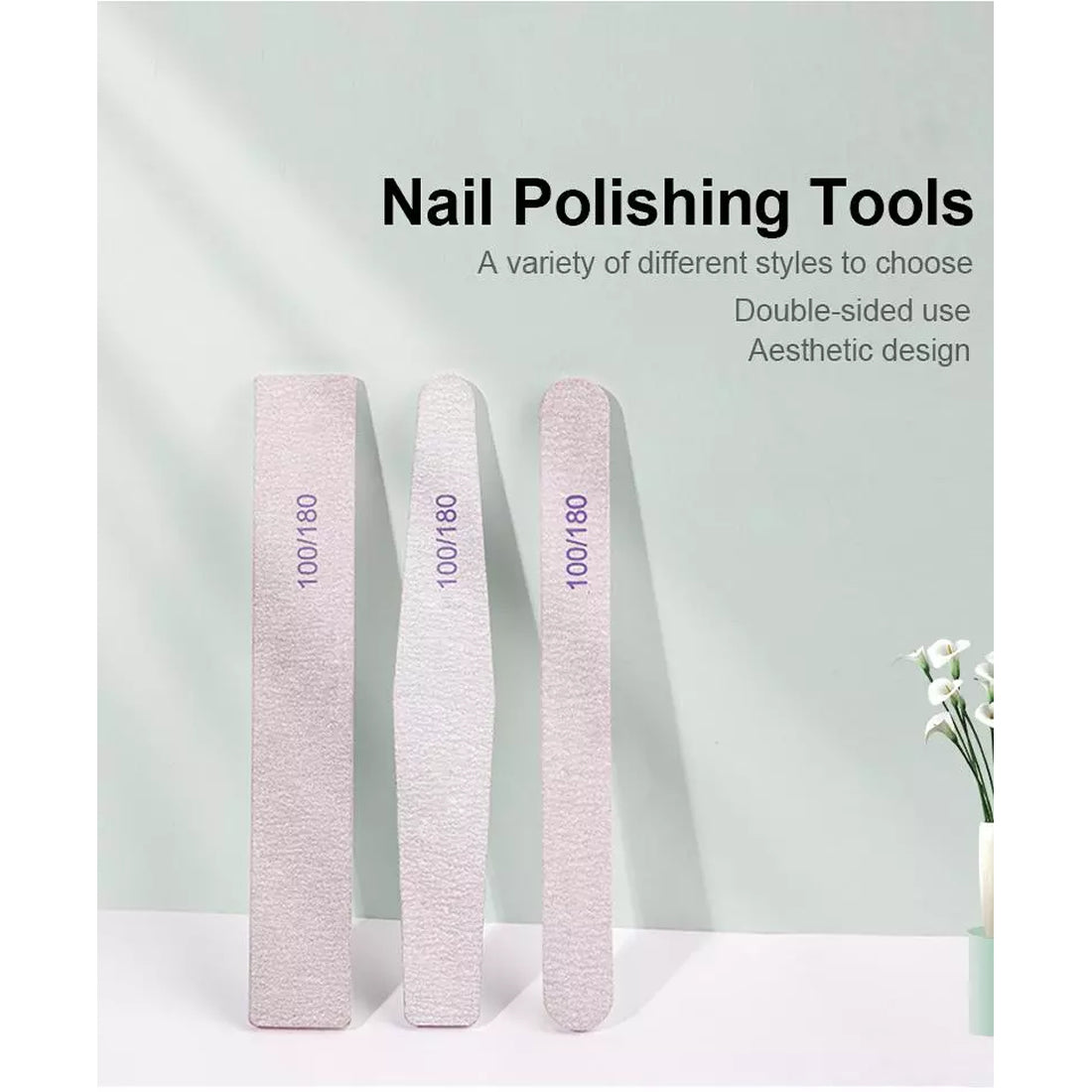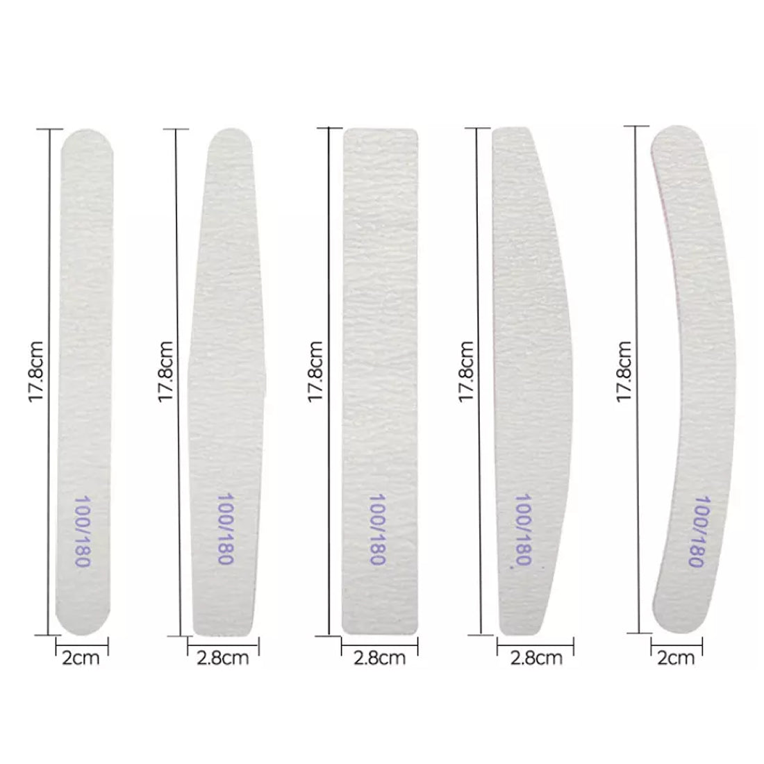 - Double-sided Grit: These nail files are double-sided, the two sides have different grits. One side is 100 grit, suitable for nail shaping and styling; the other side is 180 grit, used to polish the gel seal.