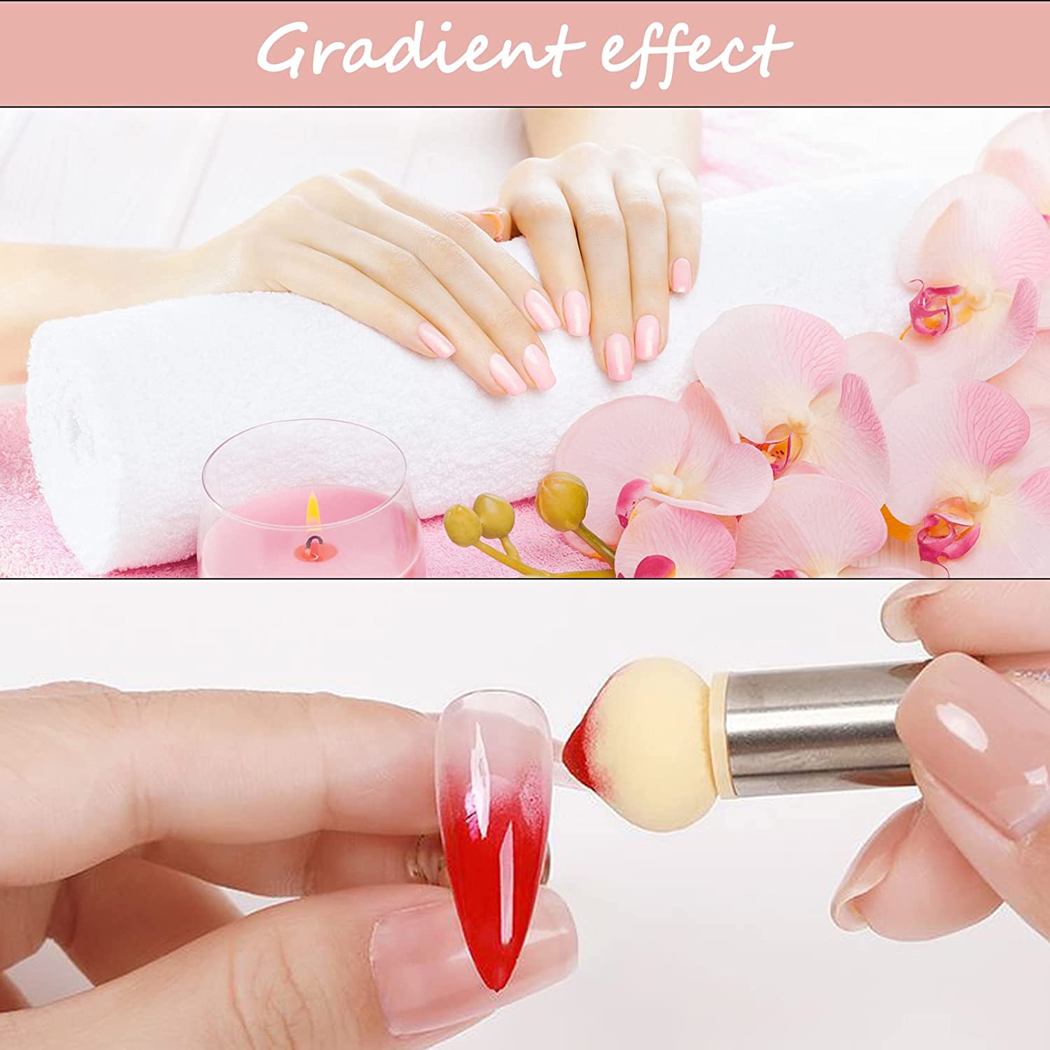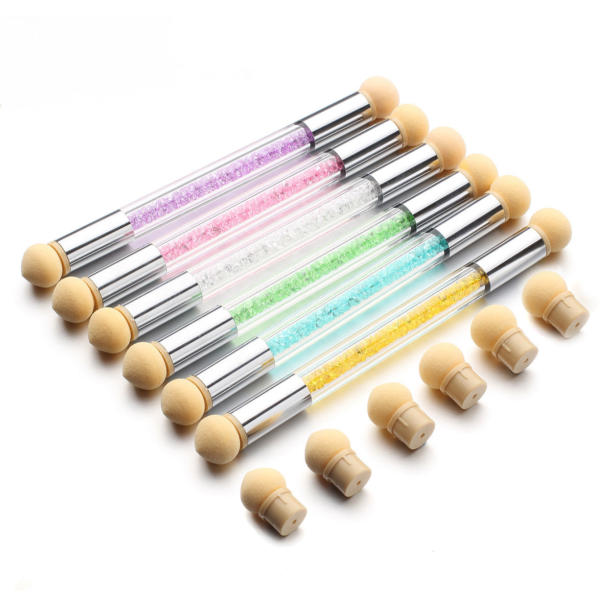 Ombre Sponge Nail Art Tool Pen Dual Head Nail Ombre Sponge Brush Picking Dotting Gradient with 4 Replacement Heads ( Pack of 1)